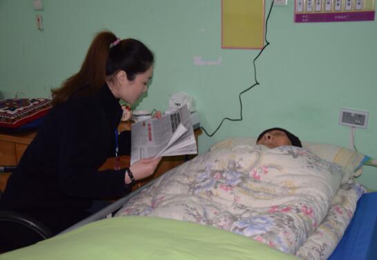 今年96岁的周大爷一个月前不慎摔倒导致股骨骨折,经市中心医院住院治疗后由我院休养区转入了特护区。入住之初,周大爷一句“我就是回来等死的”让社工印象深刻。对老人的消极言论,社工倍感心痛。为了激发老人的生存动力,恢复老人对生活的信心,社工从资源取向出发,决定开发老人看书看报、关心时政的兴趣,为此特意为老人开展了床旁阅读服务。社工和老人约定每天诵读时事政治半个小时,做老人的眼睛、耳朵去看看国家和世界的变化。诵读内容中既有政治新闻《中共中央政治局召开会议,研究部署学习宣传贯彻党的十九大精神》,又有生活信息《夯实养老服务质量基准线,持续提高养老机构服务质量》,既有国际新闻《中印双边会议》,又有地方新闻《人民路下穿正式通车》,新闻内容丰富多彩,周大爷听得兴致勃勃。社工的贴心服务,激发和延续了周大爷对学习的兴趣。在诵读过程中,周大爷说的最多的一句话就是:“符老师,太感谢你了,现在随着身体的逐渐好转,我又看到了生活的希望。”而社工的回答永远是:“不用谢,周大爷,我们明天继续。”