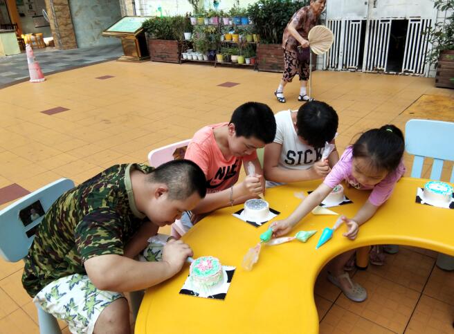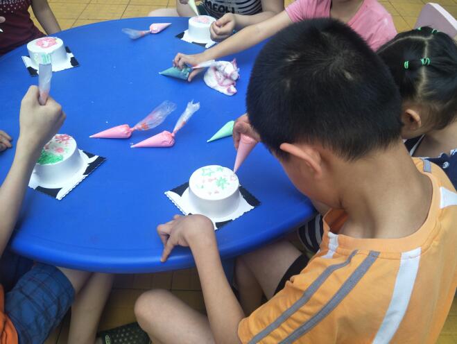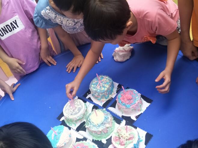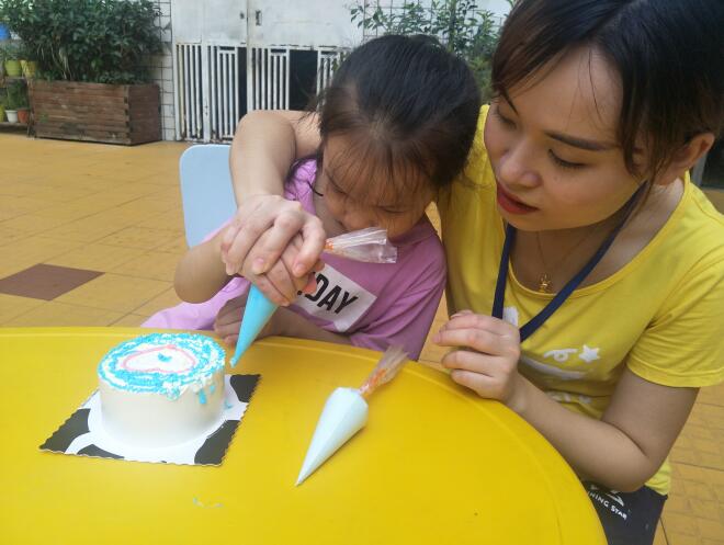烘焙师们带着做蛋糕的工具,让孩子们现场体验了打鸡蛋、抹奶油等步骤,这些看似轻松的活儿让小朋友们弄酸了胳膊,连连喊累。到了裱花环节,孩子们小心翼翼在自己的小蛋糕上进行创作。学习烘焙专业的大龄儿童小琴也来帮助弟弟妹妹完成作品。一会儿,10个精美的蛋糕就制作完成了,每个蛋糕都富有特色,代表了制作者的美好愿望。点上蜡烛,大家一起唱起生日歌,为第三季度过生日的伙伴们庆祝生日,每个小朋友都送出了自己美好的祝福。大家吃着自己做的蛋糕,开心地笑着,特别有成就感。