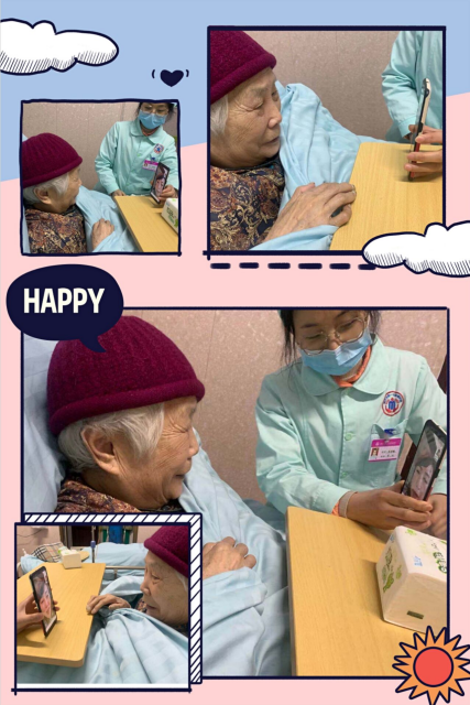 随着新型冠状病毒感染肺炎疫情持续蔓延,为了保障院内老人安全,我院于2020年1月25日起实施封闭式管理,暂停外来人员及家属探访。在新春佳节之际,工作人员细心考虑到老人对子女的思念之情,解决子女无法来院看望的问题,我们采取了通过微信视频的方式,老人与子女聊聊家常、互致亲情问候,既缓解了老人无法与子女见面的困难,又保障了老人的安全。
