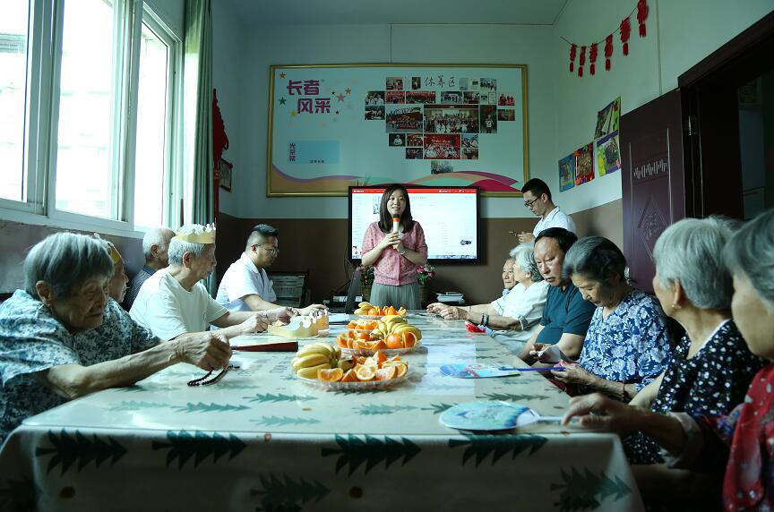 在这个意义特别的生日会上,看着老人脸上挂满笑容,工作人员黄翔也控制不住内心的喜悦,一口气给爷爷奶奶献唱了三首歌曲。驻科社工和康复师带领老人们做起了趣味游戏,现场氛围其乐融融。在切蛋糕许愿环节,范爷爷说,我的生日愿望就是以后打麻将每一把都自摸。范爷爷“接地气”的心愿让在场所有人都乐不可支。
