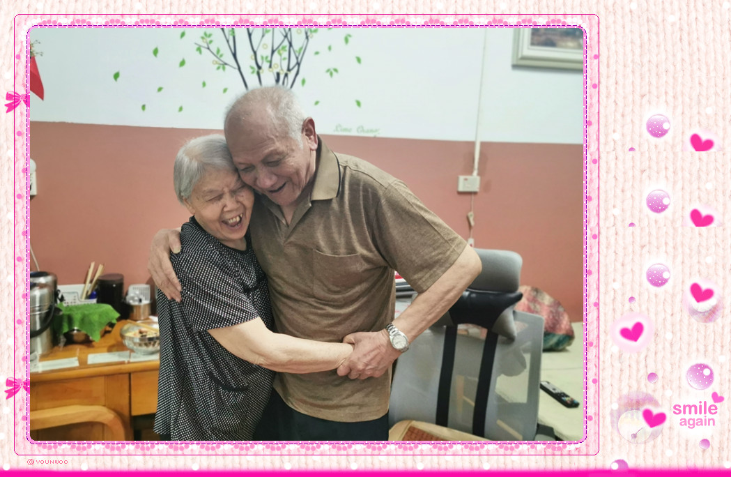最后,老两口拥抱在一起,回忆相识相知相爱的历程,感叹时光飞逝、岁月匆匆,老人还表示入住我院是明智之举,辛苦了大半辈子,耄耋之时在这里安度晚年、携手余生是一件非常幸福的事。