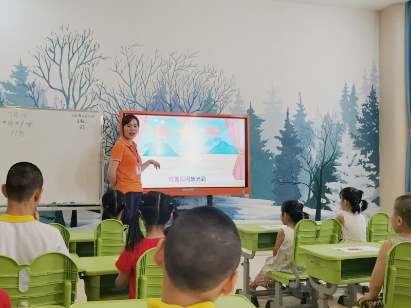 为让儿童更加深刻的领会建党的意义,加深对党的认识,活动开展以建党知识课堂、制作手工党旗和童声歌颂党三个小环节构成。老师精心地准备课程,用学生喜闻乐见的形式介绍党的历史和共产党人的故事,通过制作党旗,孩子们了解了党旗组成部分的意义:红色象征革命,黄色的锤头、镰刀代表工人和农民的劳动工具,象征着中国共产党是中国工人阶级的先锋队,代表着工人阶级和广大人民群众的根本利益。一首《红星闪闪》唱出了孩子们的心声,动人的旋律唱出久远的过去,让人想起党在历史岁月里带给中国大地的温暖和感动。