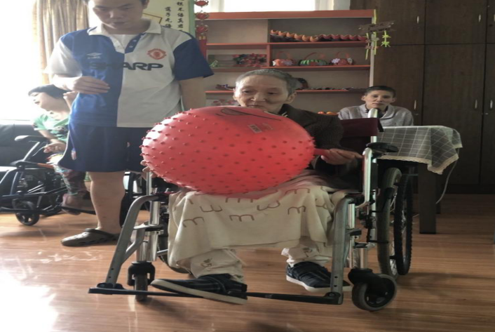 向特困人员讲清楚规则后,我们的活动开始了。能行动的特困人员玩得非常开心,这是他们以前从未体验过的。为了兼顾坐轮椅人员,我们找了一个瑜伽球,让他们用手投、脚踢的方式参与我们的活动。虽然这些只是简单的小游戏,但在有限的条件下,我们将尽可能开展更多更丰富的文娱活动,以满足特困对象封院期间的精神文化生活需求。