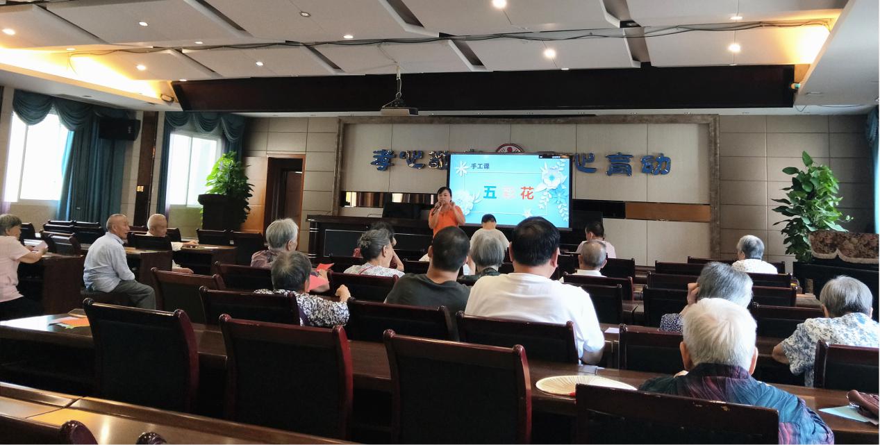 为丰富我中心入住老年人的精神文化生活,9月8日上午, 我中心社工部工作人员为老人开展了一堂色彩斑斓的“五彩花”手工课。