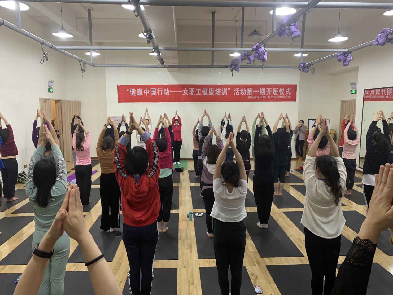 首次培训会暨开班仪式于本月16日举行,市妇联副主席万彩霞主持开班仪式,市总工会党组成员、副主席肖艳萍为活动致辞。她表示,健康是促进人类全面发展的必然要求,是经济社会发展的重要基础,希望大家一要提高认识,健康示范,通过自身行动带动影响家人、朋友、同事积极参与“健康南充”建设;同时要珍惜机会,通过训练达到修身、养性、身心合一,力争学有所获。开班仪式结束后,专业老师带领学员学习瑜伽基本动作,通过知识讲解、亲自示范、纠正不规范动作,学员们跟随老师的步伐进入轻松、忘我的瑜伽世界。