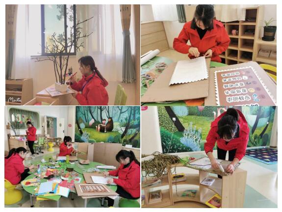 教室是我中心孤残儿童每天接触的重要环境之一,他们的身心发展、社会化发展以及个性发展无一不受到影响。在创设环境之前,特教老师精心周密策划环创方案,既立足单位实际,又严格按照勤俭节约的要求,利用废旧纸板、泡沫板、矿泉水瓶、枯树枝等物品创设良好的活动环境。主题墙更是体现了课程、教学、儿童、师生之间的多维互动,老师会结合班级特征和孩子们的学习特点、兴趣和需要,把制成的作品体现在主题墙上,供孩子们欣赏和讨论,并从中获取知识,激发探索欲望。短短三天时间,师生共同挖掘不同领域的小主题,形成了丰富多彩的大主题环境。考究的区域设置与材料投放、别出心裁的环境布置、赏心悦目的色彩搭配无不体现着师生的巧手与智慧。