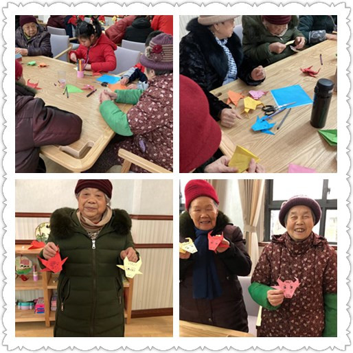 2日下午,我中心开展“嗨皮牛耶”手工活动。牛代表着力量和财富,工作人员打算用五彩的牛头表达新年祝福。“今年是什么年?”工作人员问。“牛年!”长者和孩子们争先恐后回答。“那我们一起来折一只牛。”工作人员一边讲解折法,一边高举折纸示范,长者和孩子们都神情专注地折着自己的作品。“秦老师,我这个怎么不对呢?”好学的爷爷婆婆们一边探索一边请教,他们和小朋友们相互帮助,通过对折、压、剪、画等方法将一张张卡纸变成了一个个五彩的牛头。长者和小朋友都喜笑颜开,纷纷拍下作品作留念。