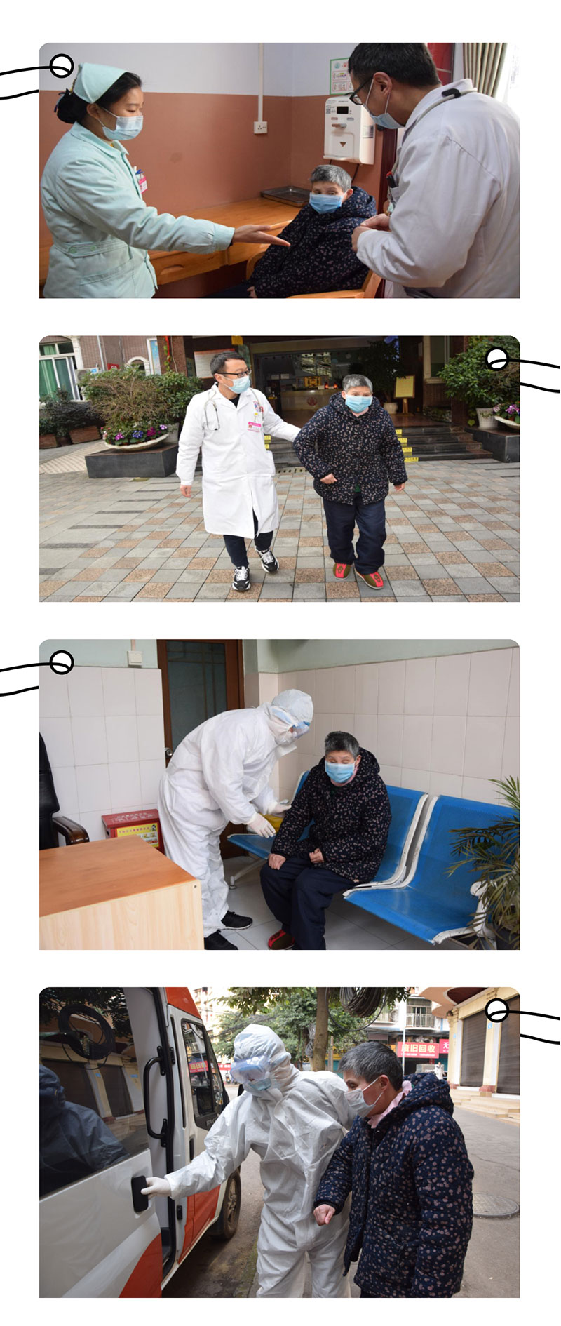 下午三点,演练开始。工作人员查房时发现养护区403室老年人体温37.8℃,出现乏力、胸闷、咳嗽、流涕等症状,立即电话联系驻科医生。驻科医生立即到达老年人房间进行问诊,之后将老年人护送至发热哨点,科室随后清理通道、将同室老年人送至留观室,疏散楼层其他老年人并进行情绪疏导,相关防控小组迅即开展消毒处理,对物体表面、地面消毒擦拭并进行终末处理。驻科医生及护理员护送患者到达发热哨点后,医生立即进行初步诊治。所有人员实行二级防护,将患者转运到急救车,护送至定点医疗机构治疗。