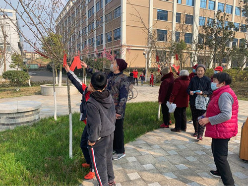活动现场,一条条彩纸制成的谜语悬挂于花园树枝,谜语种类繁多,包括字迷、地名迷、人物迷、自然类等,融知识性、趣味性于一体,每一谜语背面还精心设计了不同的新年祝福语,既贴近生活,又充满文化色彩。老人驻足观望,踊跃竞猜,时而冥思苦想,时而笑颜逐开,现场弥漫着和谐喜庆的节日氛围。