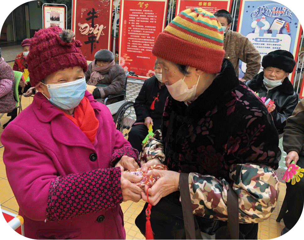 “吉祥结”、“压岁钱”体现了长幼有序,了彰显单位“家·爱”文化,让长者在给予孩子鼓励与支持,让孩子在报以长者尊敬与孝爱的同时,满足彼此情感上的需求。抽号赠礼,拉近不熟悉老人之间的人际距离,强化了熟悉老人间的情感连接,实现了从人际物理距离到心理距离的贴近。在养老育幼工作中,社工灵活运用专业方法与技术,切实将单位“爱心福院,温馨家园”办院理念落到实处。