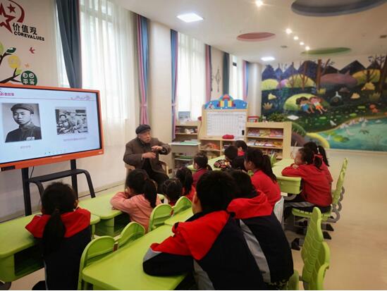 入住老年人党员、老红军代表欧杰爷爷为孩子们讲述了自己的军旅故事,孩子们观看欧爷爷保留的珍贵相片,在革命故事中感受和学习爱国敬业、不畏牺牲的革命精神。