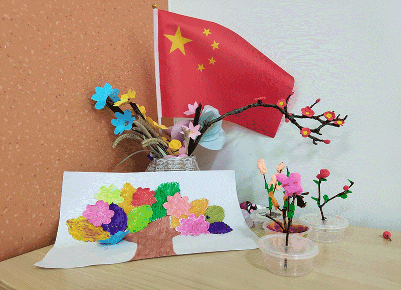 在老师的带领下,芒果班的小学生通过手工为党的百年华诞献礼,裁剪、粘贴、拼接、填色,孩子们将对党的崇敬与热爱一点点地浸润到手工作品中。