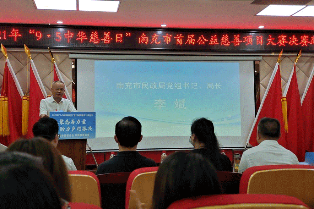 汇聚慈善力量,助力乡村振兴。2021年“9·5中华慈善日”南充市首届公益慈善项目大赛决赛路演如期举行。南充市民政局局长李斌出席活动并讲话。市委组织部、市残联、市工商联等部门相关领导观看决赛路演并为决赛获奖者颁奖。