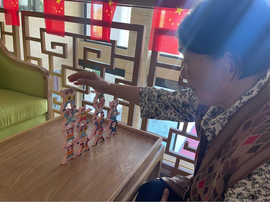 一是对于喜爱安静且动手能力强的长者,开展了积木搭建、扑克游戏等锻炼脑部神经或手眼协调的精细化活动,有效预防脑部退行性病变。