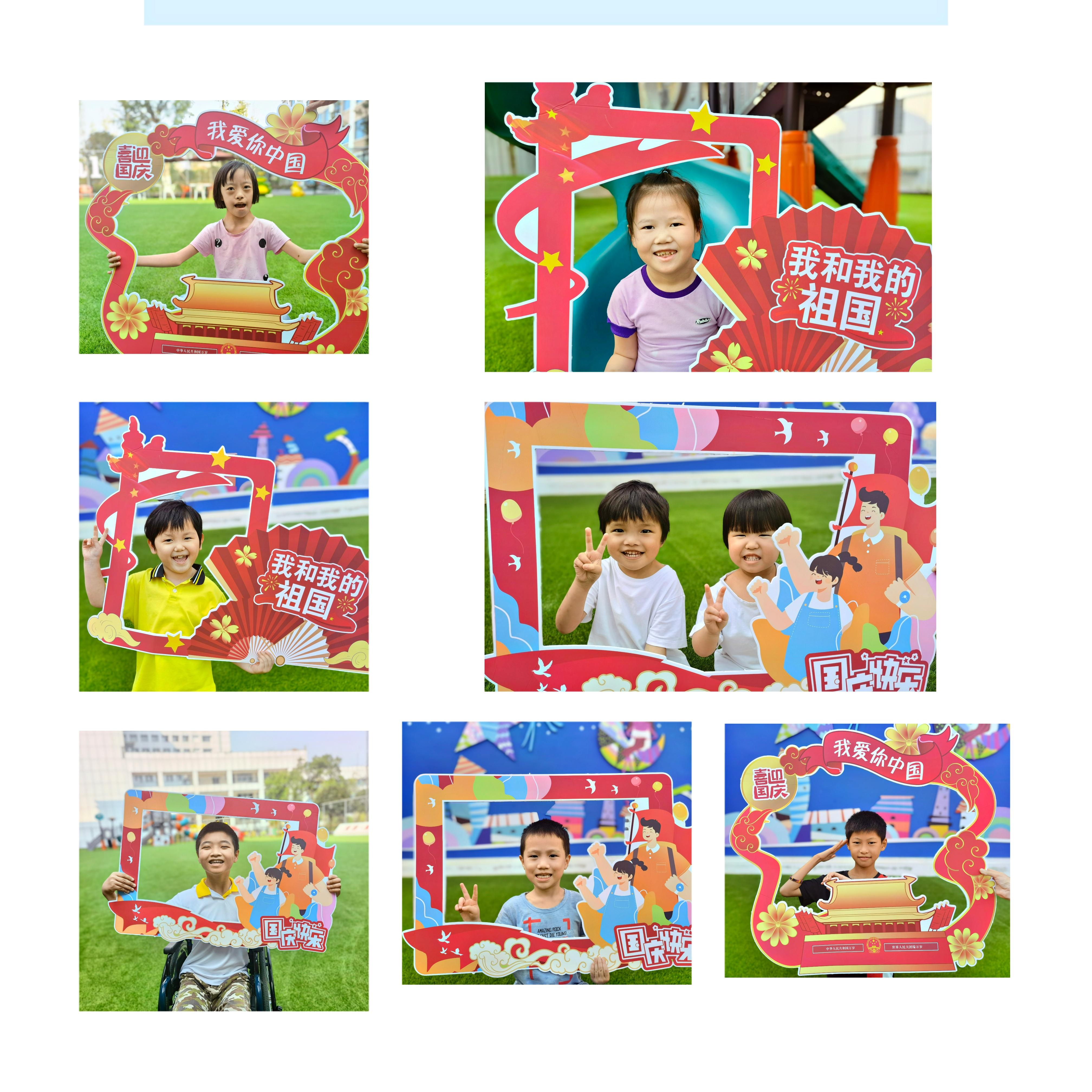 国庆节前,福娃们在爱心妈妈的陪伴下,通过含有天安门、万里长城、中国地图等元素的发夹、头饰、环创来为国庆佳节增光添彩,开展了一系列国庆主题创意拍照活动。每一张照片都是孩子们发自内心的笑容,洋溢着对祖国强大的自豪和对美好生活的感恩。中国骄傲在孩子们的言行中传递,中国自信在亲身体验中累积,爱国情怀在幼小心灵里生根!