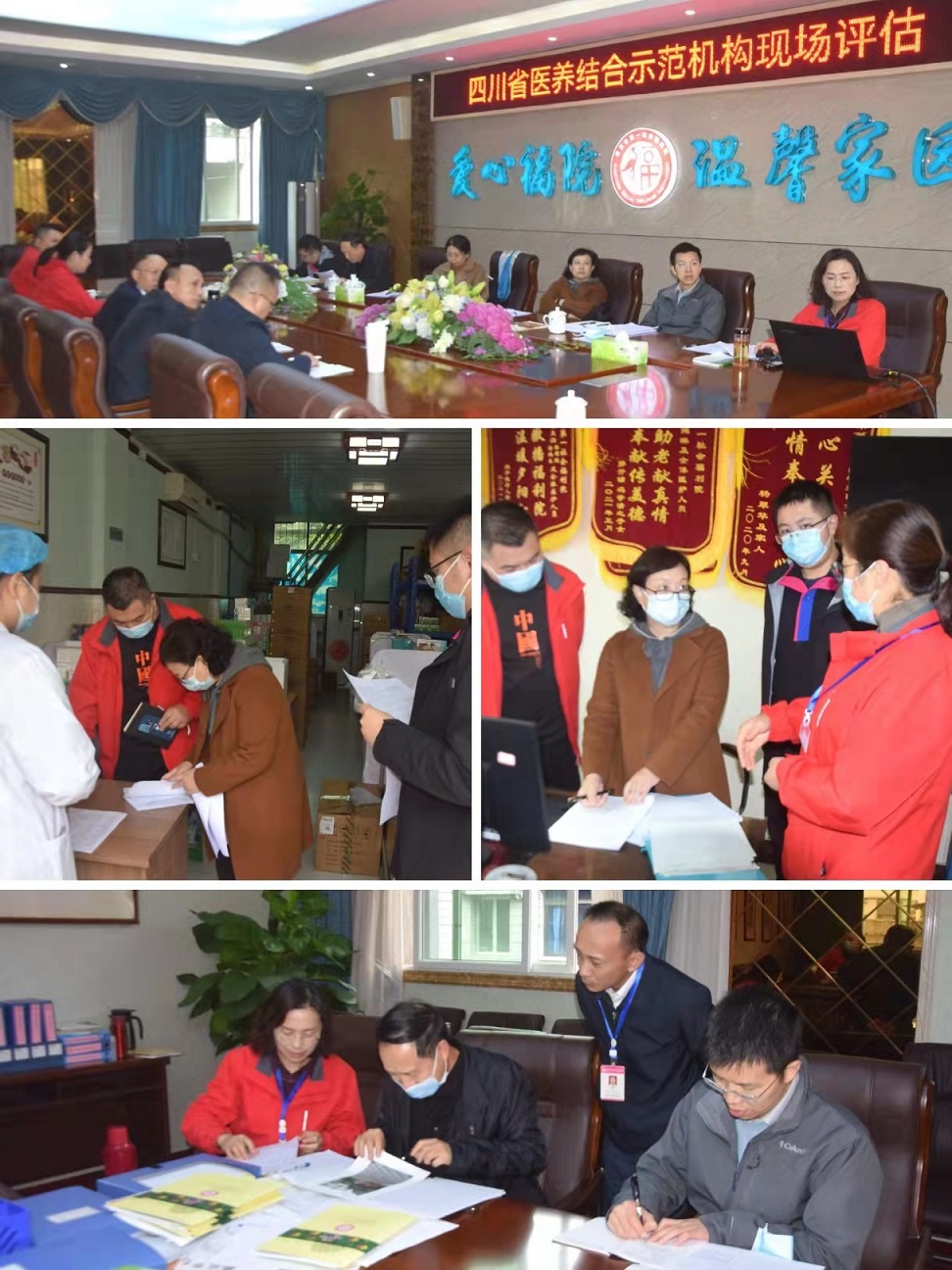 2021年10月21日,由四川省卫健委组织的四川省医养结合示范机构评估专家组到我中心进行现场评估,评估专家来自四川大学华西医院、四川省肿瘤医院、成都市第八人民医院等地,我中心主任蒋礼、副主任吴莉、相关职能科室负责人参加。