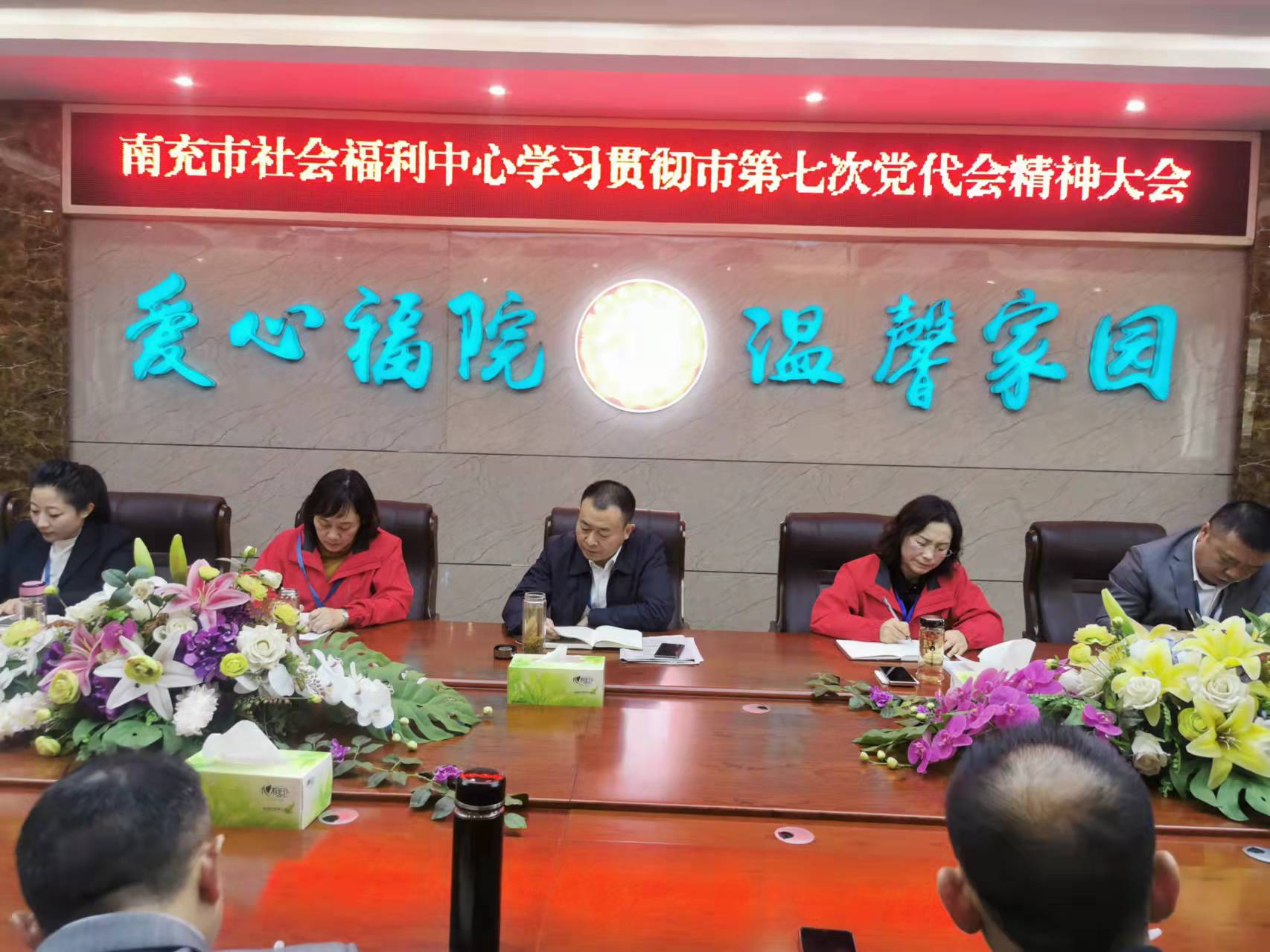11月4日,南充市社会福利中心召开支部党员大会,学习贯彻市第七次党代会精神。会议由党支部副书记、副主任焦静主持。
