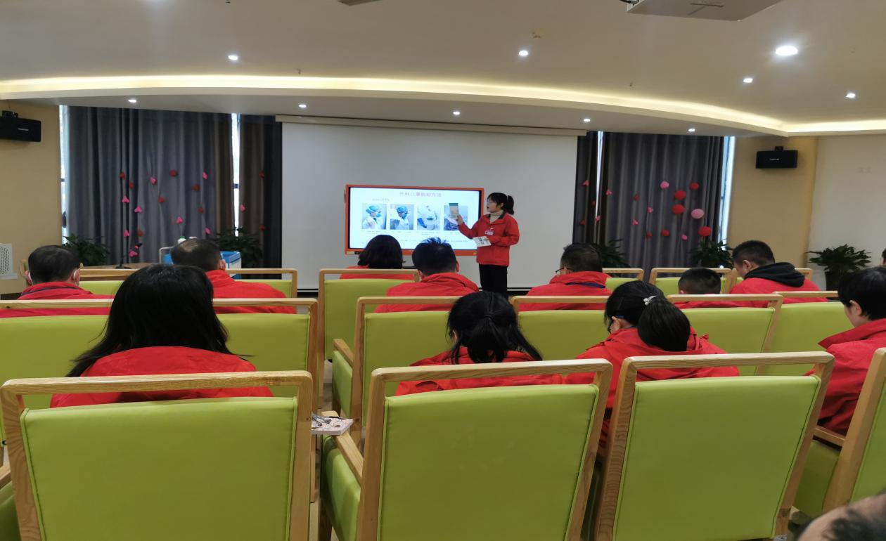 此次培训内容主要包括口罩佩戴方法和手卫生、机构内环境表面的清洁与消毒以及防护用品的穿脱流程。授课人员首先细致讲解了口罩的正确选择、洗手的指征和步骤,通过现场指导和示范,让参学人员掌握了正确的口罩佩戴和洗手方法。然后重点讲解了日常或遇确诊、疑似新冠肺炎患者情况下,环境表面的清洁与消毒方法。最后,授课人员现场实操演示了防护用品的穿戴流程。