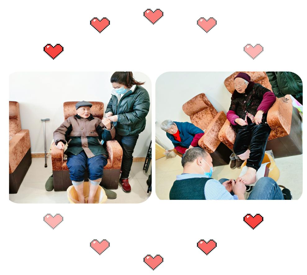 在老人泡好脚后,技师开始为老人修剪指甲,他们耐心细致地修去老人脚上的老茧,为他们做足部按摩。老人个个喜笑颜开,脸上洋溢着满满的幸福感,在享受服务的同时,连声感谢我中心为他们提供的贴心服务。