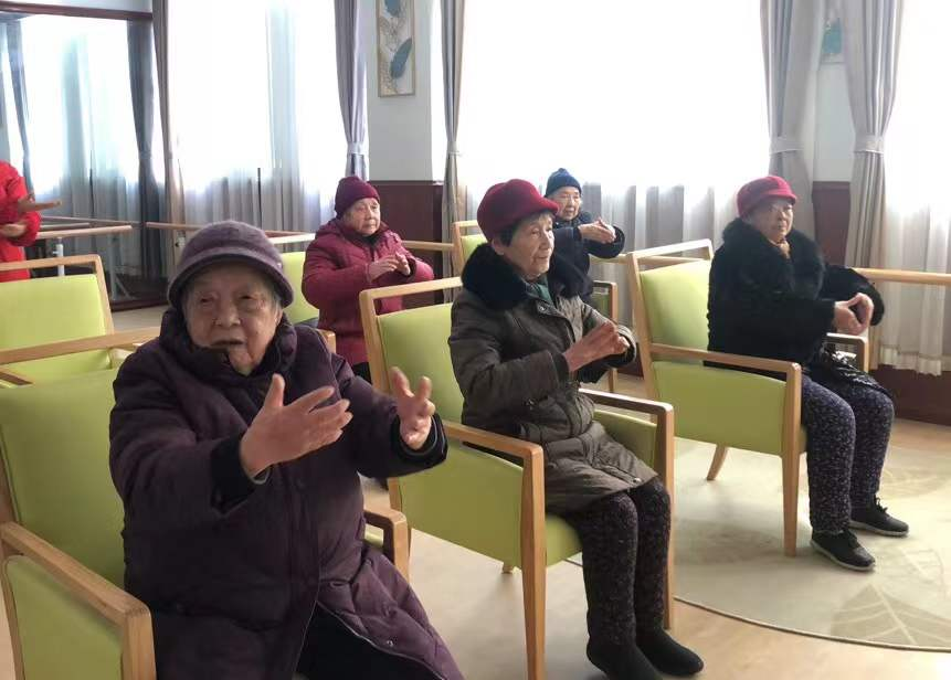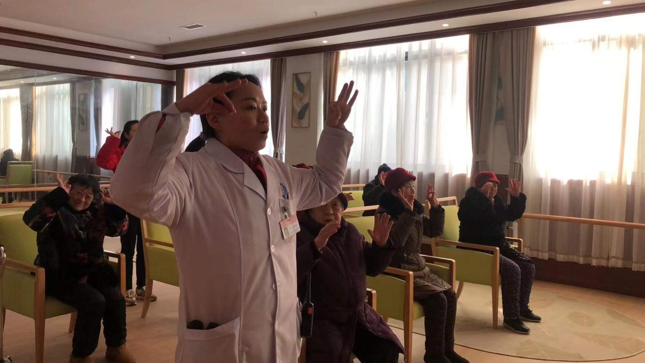 为确保演出顺利完成,自元旦节后,住养老人便陆续开始了节目的编排,经过反复讨论、研究,最终确定演出节目为集体舞《欢乐的海洋》、手语舞《万疆》。工作人员和舞蹈小组的几位老人一起熟悉歌曲,对舞蹈动作反复筛选和修改。老人们兴致盎然,每天上下午都进行排练,排练室充满了欢声笑语,他们乐观向上的精神也深深感染了工作人员。
