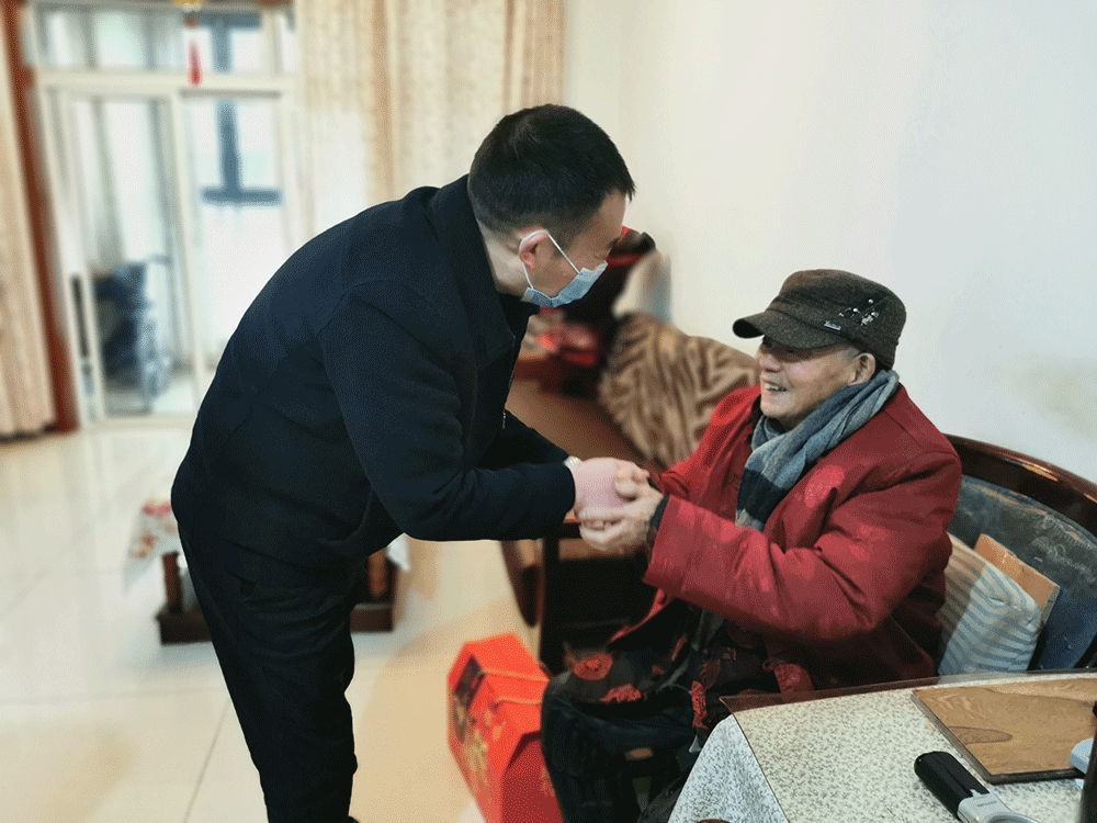 1月26日,南充市社会福利中心党支部书记、主任蒋礼一行走访慰问离休干部、老党员王作先,代表单位向他致以新春的美好祝福。