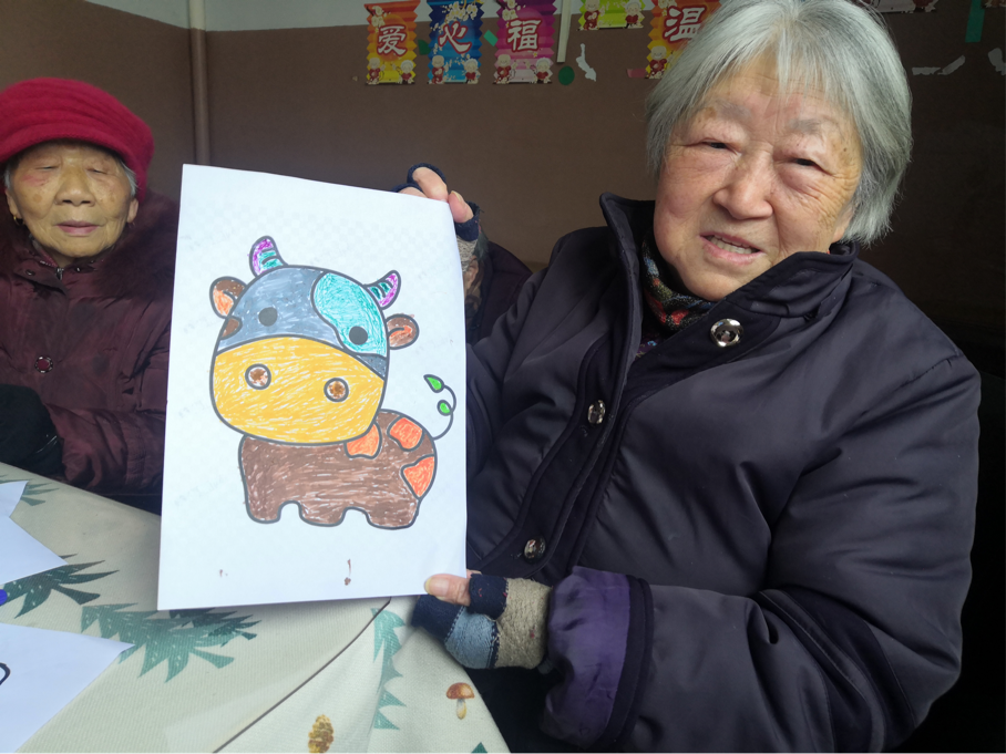 涂鸦手工活动,既能锻炼老人的动手能力、思维能力,又能更好预防认知症的发生。老人们充分发挥想象力,认真完成自己的作品。大家互相交流心得,展示成果,现场一片欢声笑语,气氛融洽。