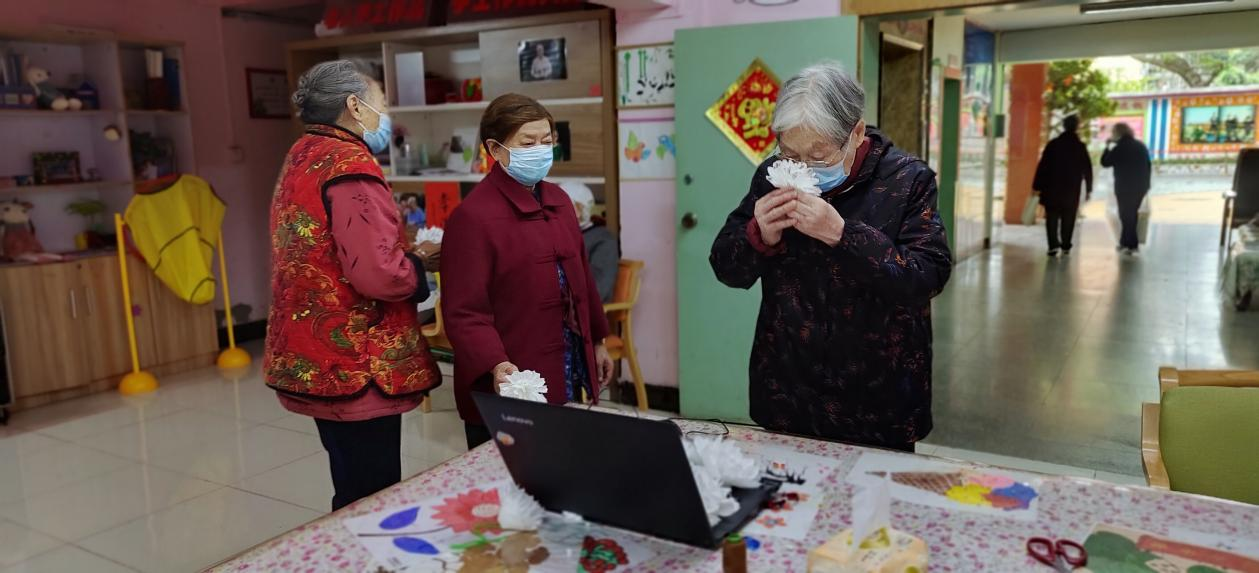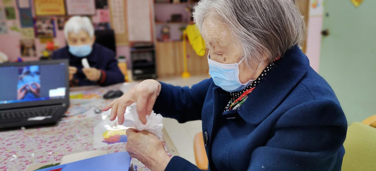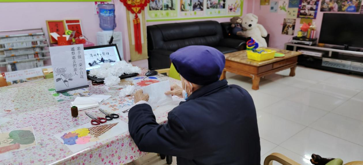 活动中,长者一边制作小白花,一边讲述对已故至亲的思念,释放悲伤与缅怀的心情。