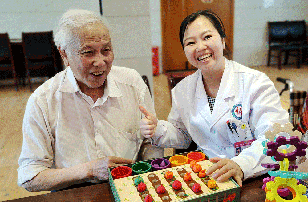 2019年,我中心设置认知症照护专区——“记忆之家”,围绕认知症长者的需求,配备医生、护士、养老护理员、康复治疗师、老年社工,联合专科医师、营养师、志愿者、家庭成员及其他社会资源为认知症长者提供了跨学科多元整合式服务,提升认知症长者的晚年生活质量。并于今年启动“忆路有爱,认知无碍”老年认知障碍预防与干预社会工作项目,从多方联动的角度,积极推动构建认知障碍三级预防体系和全程管理模式。