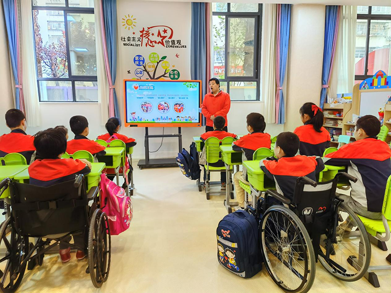 课堂上,特教老师开展助残文化教育,引导学生认识助残的重要性和意义,提升残疾儿童自强自助意识。