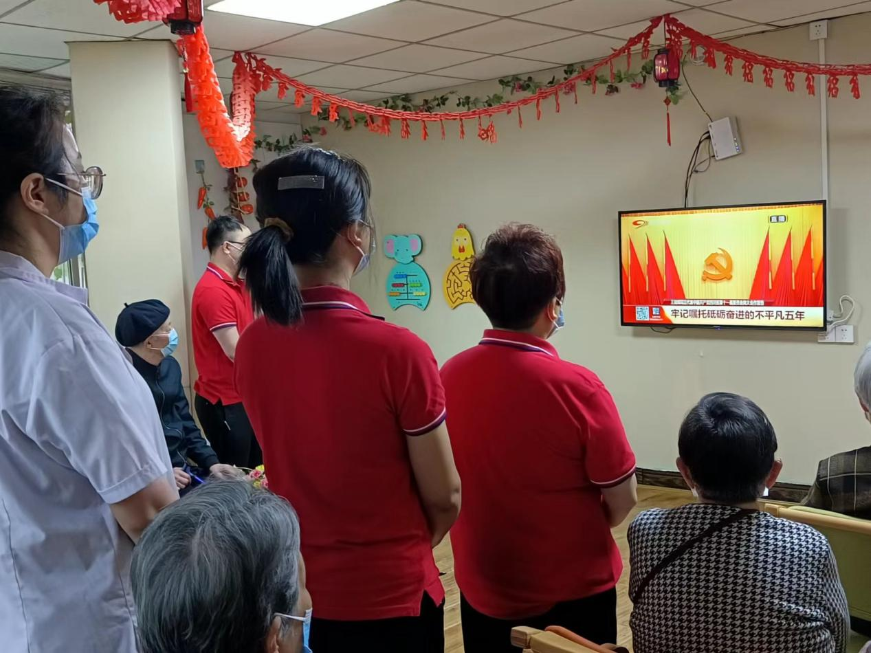 上午8:30我中心两院区各科室,提前调试设施设备,在做好疫情防控的前提下,组织协助老人到达各收看区。