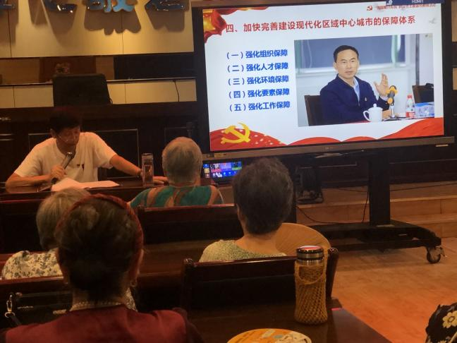 向前围绕建设现代化区域中心城市的重大意义,总体要求,重点支撑,保障体系四个方面进行了精彩宣讲。对我市加快建设区域制造中心、区域金融中心、区域交通物流中心、区域教育体育中心、区域医疗卫生中心、区域文化旅游中心发展谋略进行深度解析,让老人们对南充市发展蓝图有了更清晰的认识和了解,对南充市建设成现代化区域中心城市有了更大的信心。