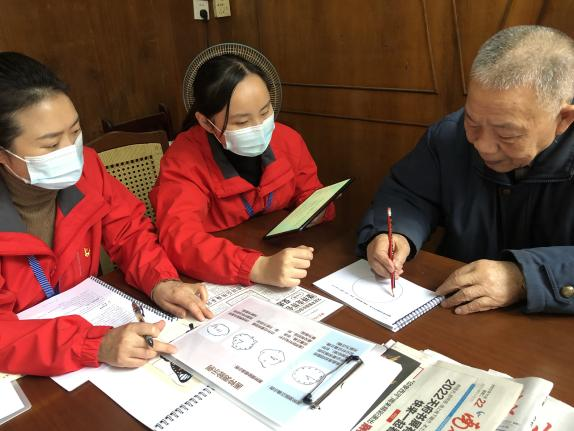 评估员采用先进评估软件、一体化健康评估仪器及富有娱乐性的认知评估工具,运用望、闻、问、测的评估方法,围绕长者身体健康、生活能力、认知功能、精神心理、社会功能、居家安全6个维度进行评估。对评估发现的老年人健康管理认知不足,认忆力降低、生活自理能力降低、人际社交疏离、居家安全隐患等现象,评估人员分别提供健康管理、脑健康锻炼、社会人际交往、情绪调适、居家安全等方面的建议,并对老人亲属的居家照护开展指导,为老人建立评估档案。工作人员还随机赠送了认知症科普手册及脑健康锻炼工具包。