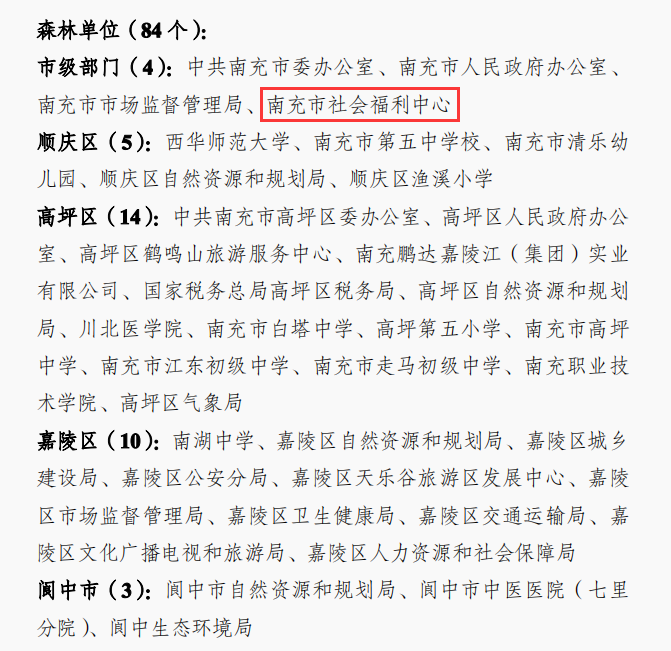 经前期市林业局、市创森办评选、验收,12月8日,经评选公示,我单位获南充市“森林单位”称号,成为市级“森林单位”之一。