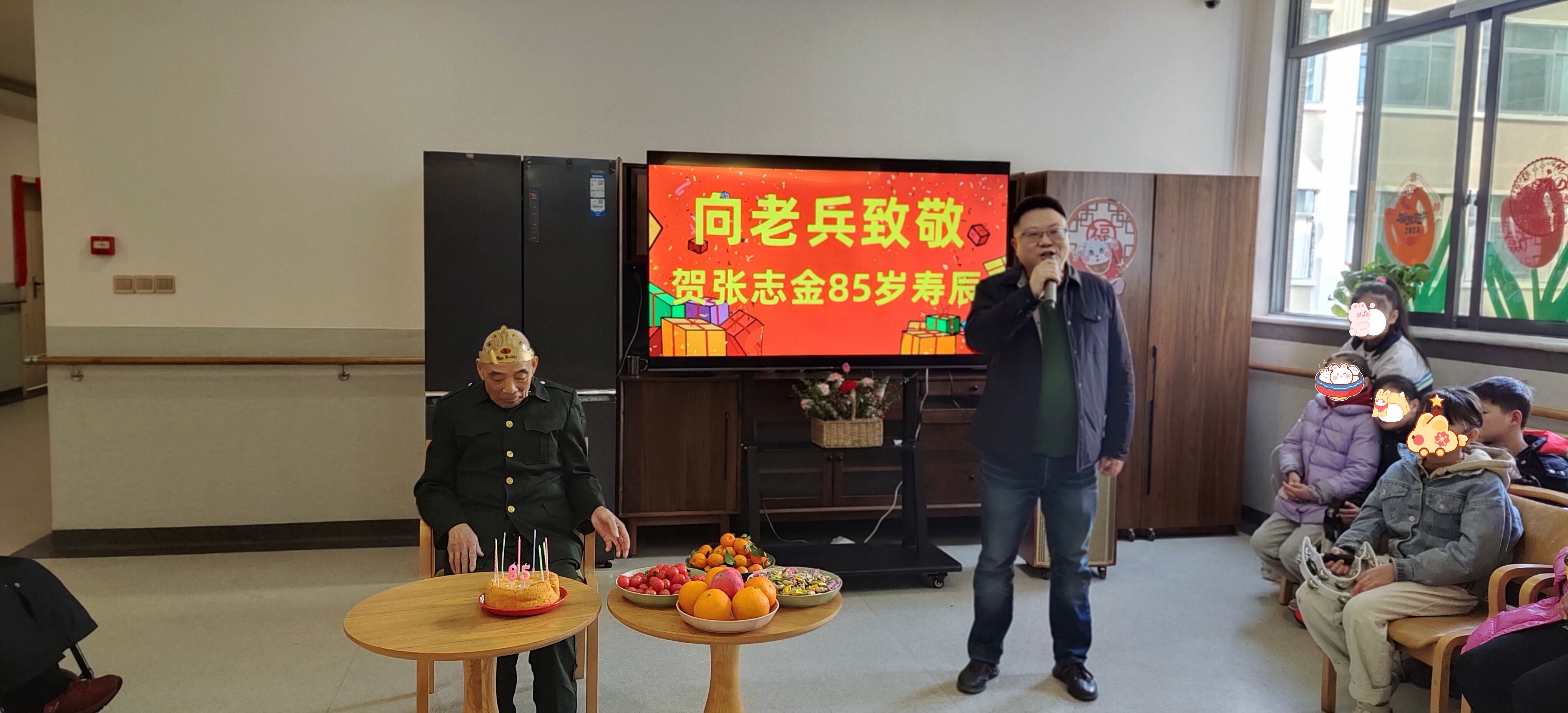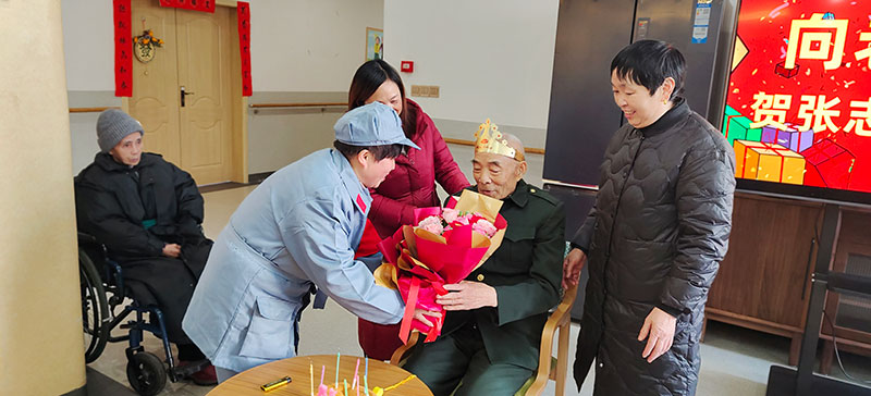 1月29日是张爷爷85岁寿辰,爷爷曾是一名军人,为了让爷爷重温过去光辉岁月,认知症照护专区为爷爷准备了一场特殊的军旅主题生日会。