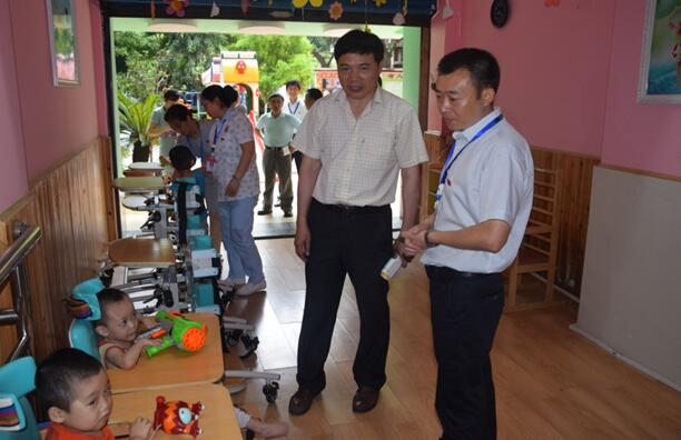 廖永康副厅长(右二)在蒋礼院长(右一)陪同下察看儿童康复情况