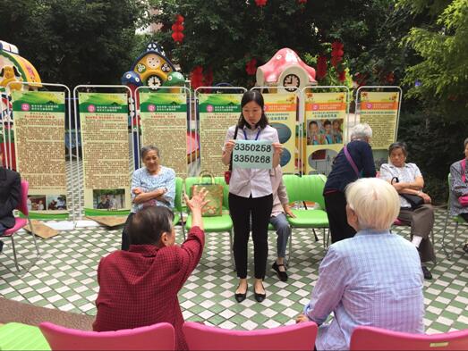 “倒背如流”是一个记忆力训练游戏,目的在于帮助老人提高短时记忆力。工作人员将参与游戏的老人分为4组,每组各派一名队员参与数字记忆挑战。第一步,由队员选择尝试的数字长度;第二步,工作人员一字一顿地念出相应的一串数字;第三步,两名挑战者听完后,按正确的倒序背出那串数字,第二、三、四组按照相同的方式进行游戏。参与游戏的老人平均年龄在80岁以上,活动中,成绩最好的老人能准确倒背5个数字。