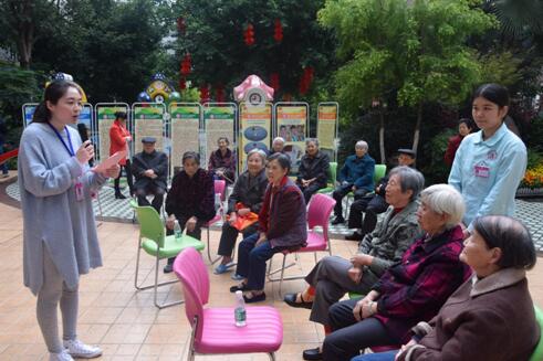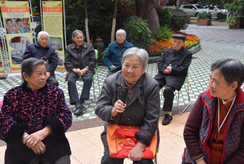 10月15日下午,单位院坝内热闹非凡,12名老人在社工师组织下进行“听歌词猜歌名”比赛,15名老人拉拉队在加油助威。