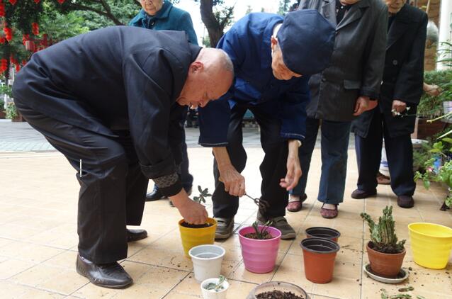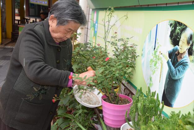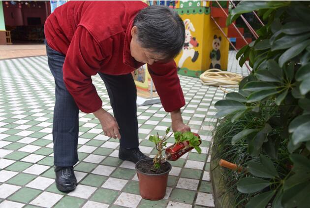 “园艺与养生”小组自去年成立以来,得到了老人的积极响应,先后有十余位老人加入其中,将自己领养的花卉当作宝贝,从松土、施肥、修枝、换盆、浇水都亲力亲为,毫无懈怠。