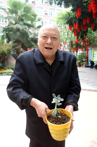 第一次参加园艺活动的钱大爷认养了一株容易栽培的“落地生根”又称“厚脸皮”的绿叶观景盆栽作为自己加入小组的第一盆植物。一旁有着丰富种花经验的冉婆婆告诉园艺新手钱大爷:“这种植物最好养了,你把它放在阳光充足的地方就能长得很好,但是不能浇太多水,最好是用喷叶的方法保湿,土壤干了再浇水,否则容易烂根。”听罢,正要给植物浇水的钱大爷赶紧住了手,一边把花盆放回花架上,一边乐呵呵地说:“厚脸皮啊厚脸皮,你在这好好的长哦,我明天再来看你。”