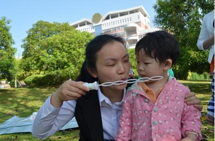 由于第一次到大学校园,孩子们表现十分兴奋,欢歌笑语弥漫了整个草坪,和妈妈们一起做游戏、唱歌,吸引了来往路人纷纷驻足观看。美好的时光总是短暂,中午时分,到了该说再见的时间,孩子们在收拾地上的垃圾后依依不舍地离开了美丽的校园。
