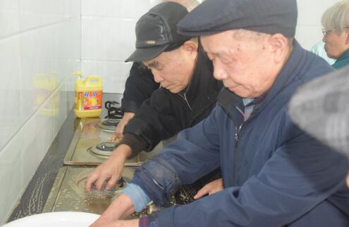 “长者志愿服务团队”的成员均是自愿加入的爷爷奶奶。在休养区负责人的带动下,长者志愿服务团队与工作人员合力进行每周一次的大扫除活动。活动中,身怀六甲的休养区副主任罗丽霞带领大家认真做清洁,耐心讲解清洁的技巧,工作人员积极配合帮助老人接水、换水、拧毛巾,老人与工作人员都干劲十足,他们有的拿抹布擦配餐室的桌台,有的拿着扫帚仔仔细细清扫角落的灰尘,还有的人将餐车的里里外外擦了个遍。活动的热情在每个人心中传递,经过大家一个多小时的共同努力,配餐室焕然一新。