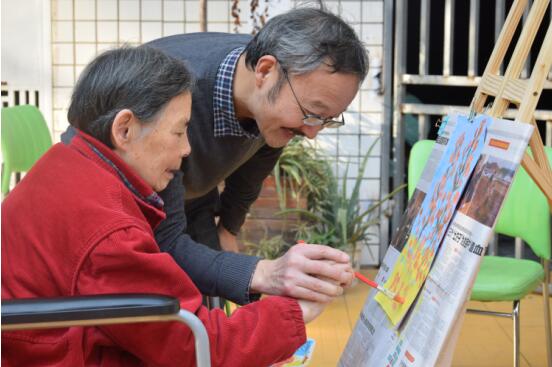 11月7日下午,我院开展水粉画学习,二十多位老人和孩子一起参加,陈婆婆就是其中一员。在画画的过程中,男子站在旁边,细细地看着母亲笨拙地用画笔沾色,再小心翼翼地画到纸上,先是天空,再是黄土地,再是两棵树,最后画上树叶,男子就只是微笑地看着,没有参与,也没有打扰,画作完成后,母亲握着画笔的手颤颤巍巍地欲写上自己的名字,但是右手颤抖得厉害,要完成一撇一捺都显得困难,这时,男子走上前,握住母亲的手,写下了母亲的名字。不了解情况的老人和工作人员纷纷说道:“这儿子真孝顺,陈婆婆有福气。”我笑着告诉大家,这不是陈婆婆的儿子,是小女婿。大家感到非常惊讶,都说女婿就是半个儿子,能为丈母娘支付养老费用,时常前来探望就已经很不错了。
