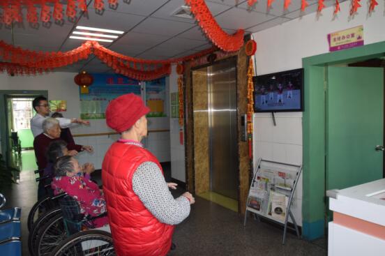 我院特护区现有住养老人62人,因身体原因和活动场地受限,部分老人无法参加早操锻炼身体。为了帮助住养老人在有限的空间内达到锻炼目的,驻科社工就地取材,将适合失能老人的功能操下载后在广告机上播放。