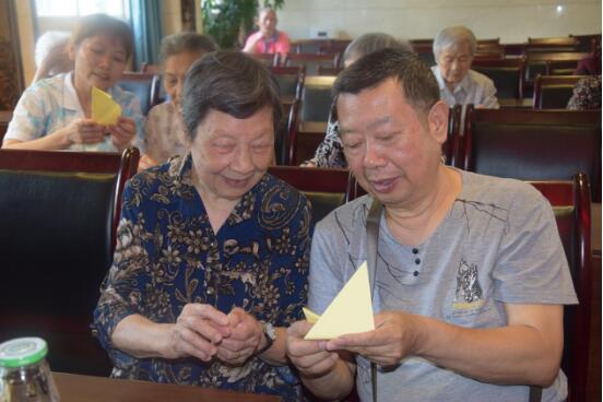 本次活动集文艺表演、手工制作于一体,为老人、家属、工作人员提供了展示自我和表达爱意的平台。在活动正式开始前,主持人姚海蓉为大家朗诵了诗歌《亲情的雨花》,轻柔的语调、缓缓的语速、饱含深情的词句赢得了全场雷鸣般的掌声。接着,老人家属纷纷献歌,表达对老人的祝福和对单位工作的肯定和感谢,在家属的带动下,工作人员也以欢快的歌曲回赠家属和老人们。在手工制作环节,一对对父女、母子、母女在工作人员的陪伴下,一步一步、小心翼翼地折纸、做造型,这场景令人重温了儿时父母手把手教孩子做手工的温馨记忆。活动结束后,大家合影留念,纷纷喊出“5·20,我爱你”这一爱的宣言。