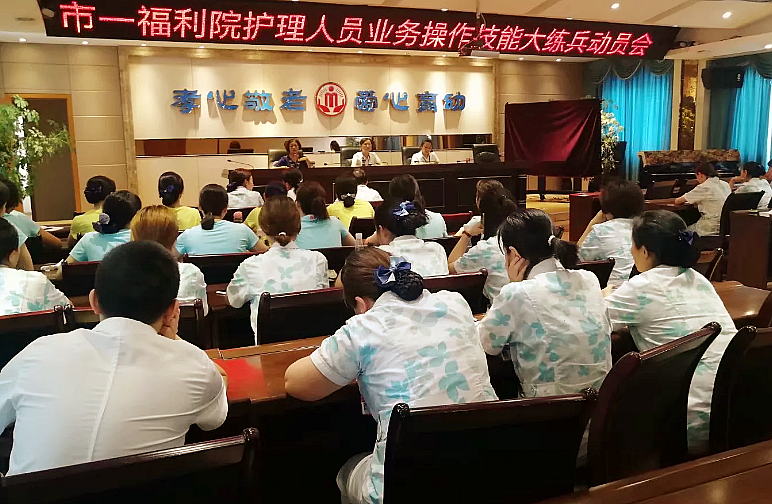 7月24日,市一福利院召开2018年护理人员业务技能大练兵动员会,拉开2018年护理人员业务技能大练兵帷幕。副院长吴莉、工会主席焦静及全体护理人员参加了此次会议。