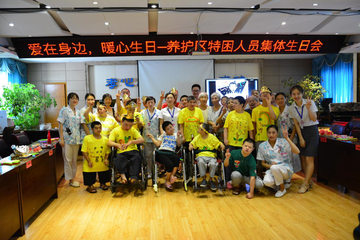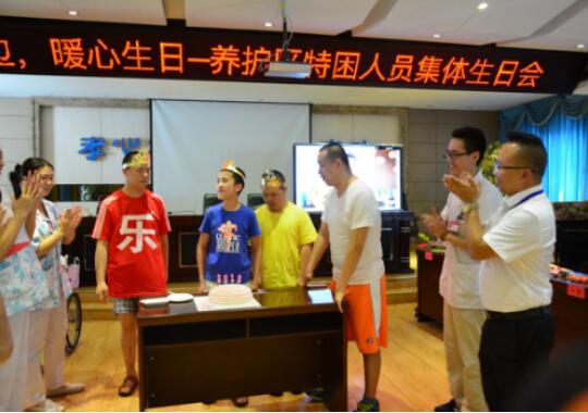 我院特困人员约30多名,皆是由于智力及身体原因入住我院养护区。面对这一群盲、聋、哑、痴、呆、傻最弱势群体,工作人员不离不弃,竭力让他们感受到这个大家庭的温馨与幸福。近日,养护区为特困人员开展了首个以“爱在身边,暖心生日”为主题的集体生日会。