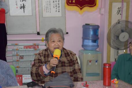 新入住老人张素芳进行自我介绍