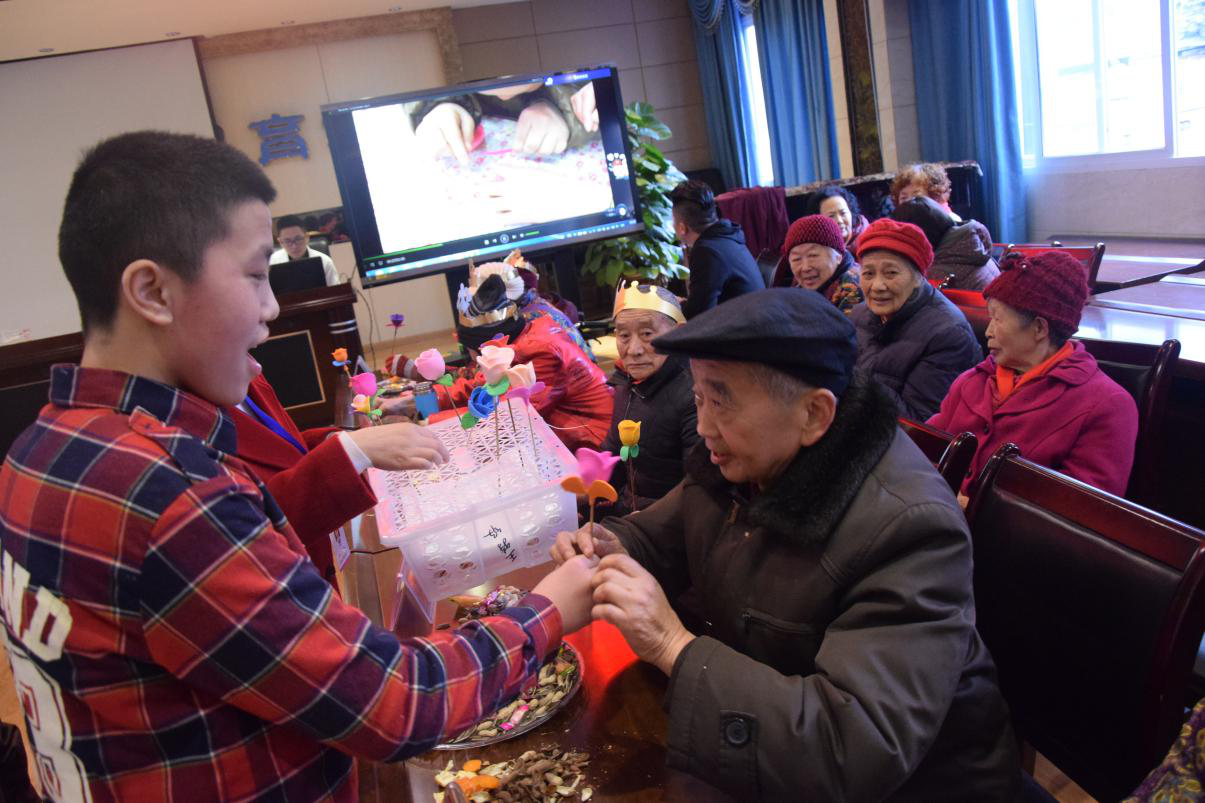 “爷爷、奶奶生日快乐,我是你的责任护士。”祝福视频中映入眼帘的是老人熟悉的工作人员、家人、好朋友,老人倍感欣喜。养护区特困人员为此次生日会特意编排舞蹈,精心准备小礼物——“彩泥花”。当特困人员将小礼物送到寿星老人们手中时,老人们脸上的笑容如“彩泥花”一样鲜艳、美丽。