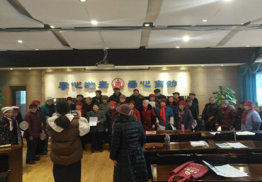 2019年1月16日上午,福利院内歌声飘扬,三十多位老年合唱团成员在二楼活动室排练,准备在福利院春节演出当日用歌声表达对祖国母亲的热爱,颂扬人民在党领导下的美好生活。