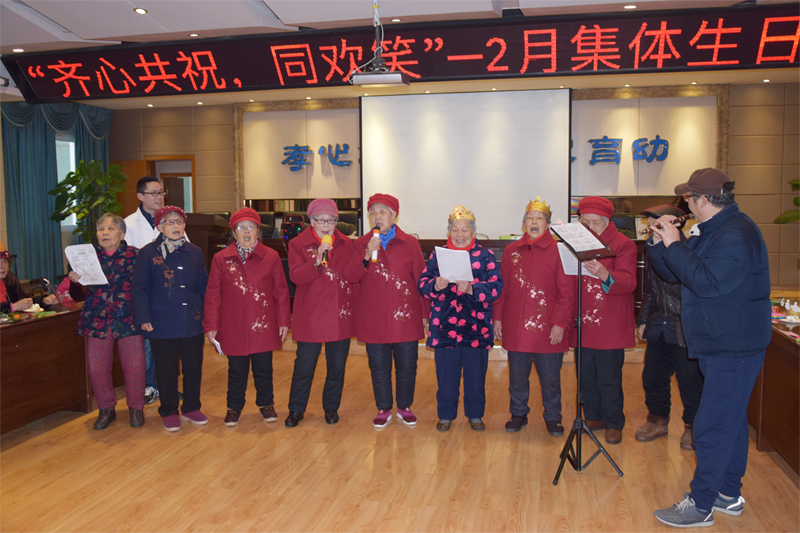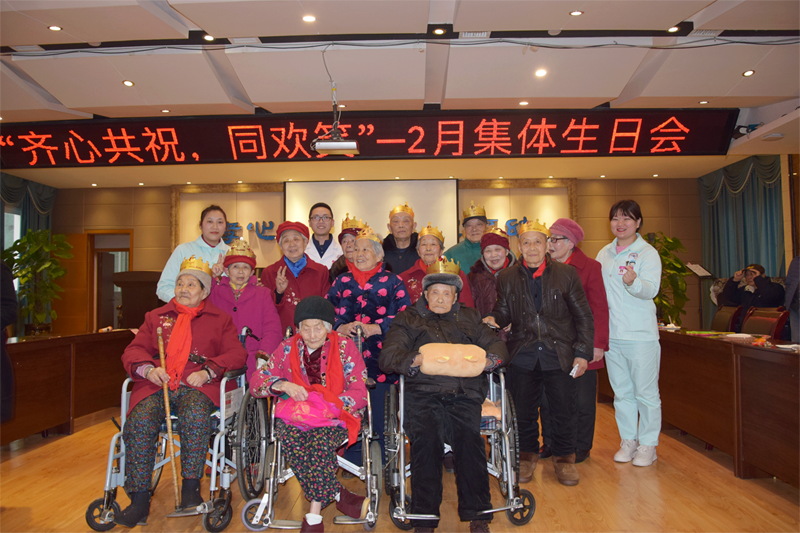 2019年2月26日下午,我院养护区成功举办了“齐心共祝,同欢笑”二月老人集体生日会。共40余名老人及家属齐聚二楼活动室。在这阳光明媚的日子里,每位老人脸上都露出了温暖的笑容。